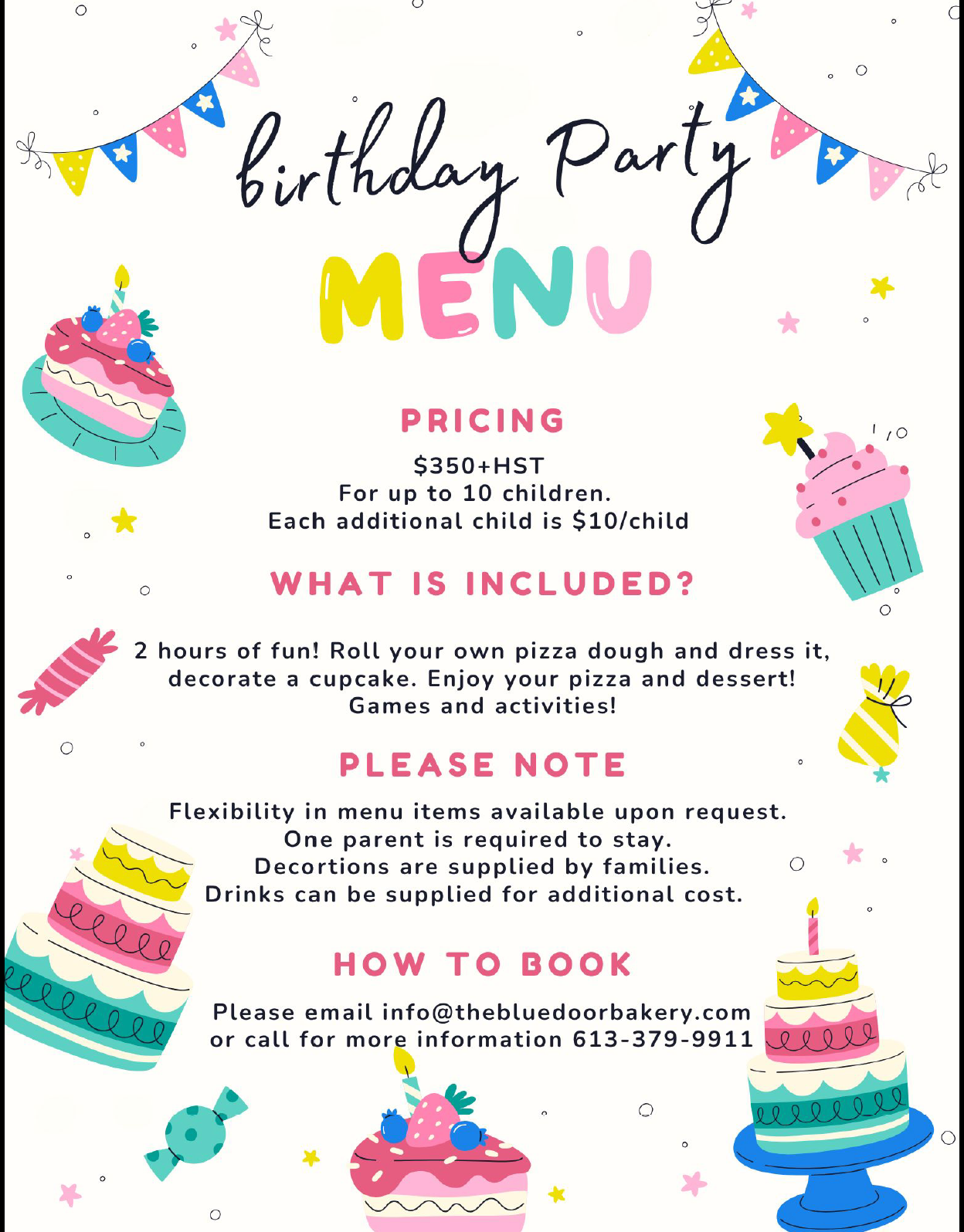 Stay up to date with everything happening at The Blue Door Bakery! From classes and workshops to seasonal celebrations and trivia nights, our events calendar is your go-to place for what’s coming up. Explore upcoming dates, reserve your spot, and join us for delicious, creative, and memorable experiences.